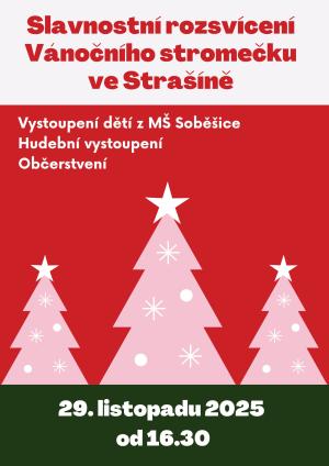 Zveme vás na rozsvícení vánočního stromečku, která se koná 29. listopadu 2025 od 16:30. Přijďte si užít hezký program a setkat se s dalšími lidmi.