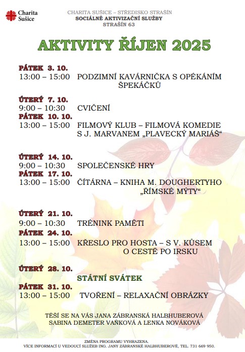 Přehled aktivit na měsíc říjen